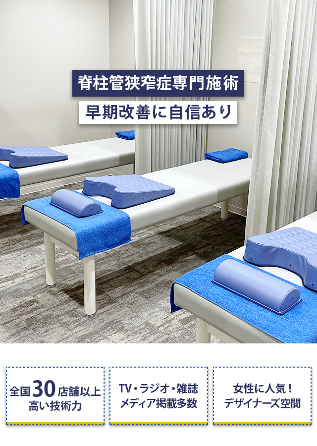 「首〜肩〜背骨〜腰」という全身の骨格がズレていると体の回復力が低下し、脊柱管狭窄症が改善しにくくなるだけでなく再発もしやすくなります。